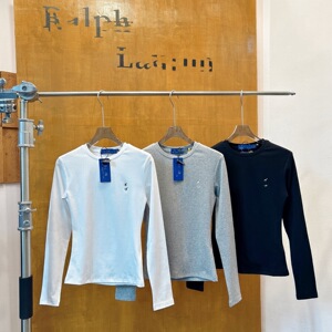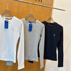 25秋季拉夫小马标刺绣简约运动长袖女修身显瘦大弹力圆领打底衫