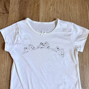 t-shirt美式2025女装夏兔子图案紧身辣妹显瘦露脐圆领短袖T恤