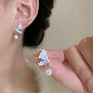 镶锆石耳钉女小众系列设计珍珠高级感耳环轻奢时尚精致百搭耳饰潮