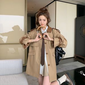 休闲风衣外套女春秋季新款复古感英伦风小众设计撞色开衫