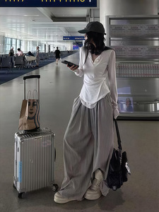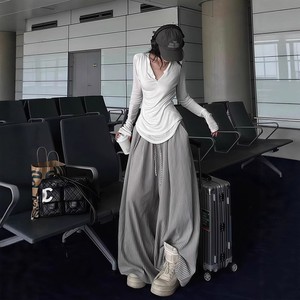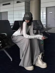 美式复古条纹阔腿休闲裤女秋季新款街头辣妹慵懒松弛宽松拖地长裤