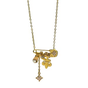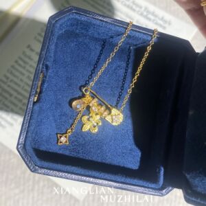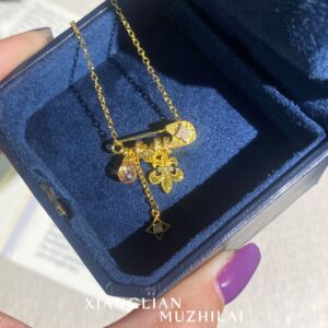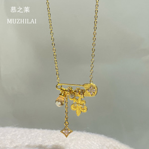 中古拉丝鸢尾花星芒别针吊坠项链女款高级感轻奢小众配饰锁骨颈链