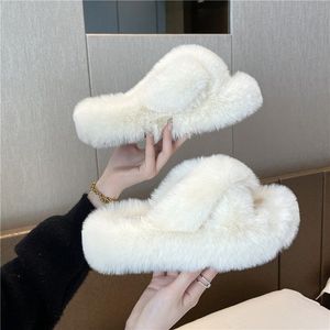 毛毛拖鞋女外穿2025秋冬新款网红爆款时尚加绒毛毛鞋厚底棉拖居家