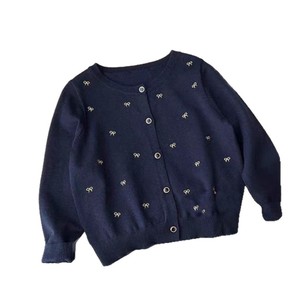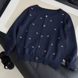女童毛衣春秋季2025新款儿童蝴蝶结针织衫a类棉女孩秋装百搭开衫