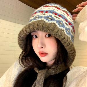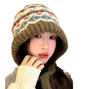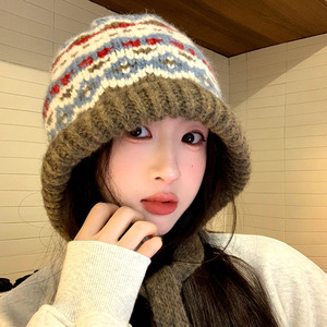 欧洲新款针织帽子女冬季复古巴拉克拉帽包包帽保暖护耳针织毛线帽
