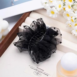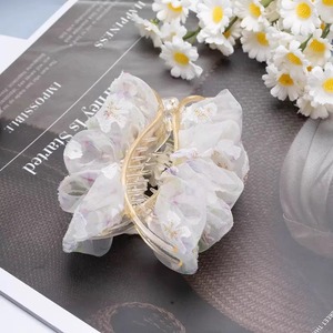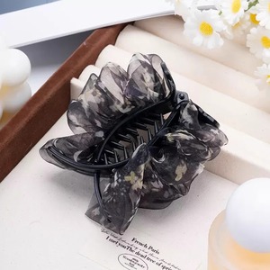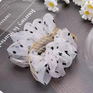 春季新款褶皱款气质百搭网纱款简约优雅丸子印花雪纺皱抓夹37M