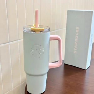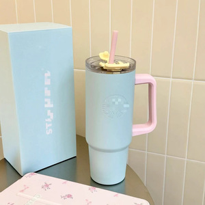 星星跨境不锈钢40oz手柄汽车杯大容量30oz喷塑吸管杯车载便携冰霸
