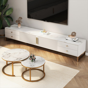 180cm电视柜+120cm茶几【白纹理+金架】;组装