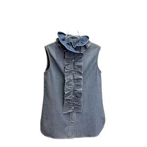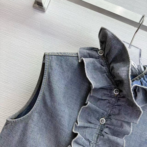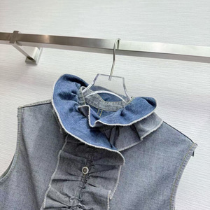 深圳南油直供25年秋季新款复古风减龄百搭花边领无袖牛仔衬衫女