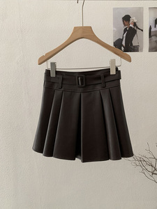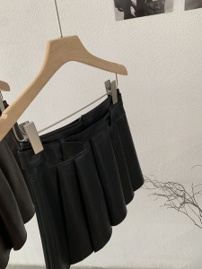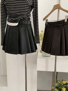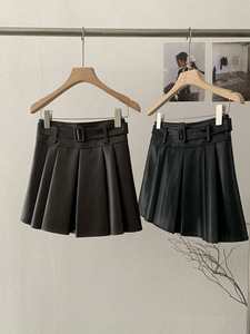 欧玛莱 PU皮百褶纯色小皮裙短裙女秋冬季新品高腰A字半身裙潮4593