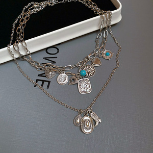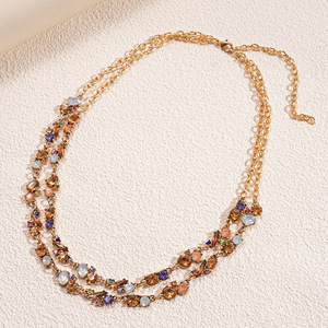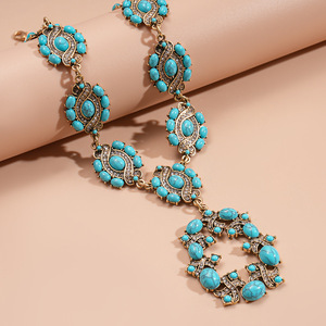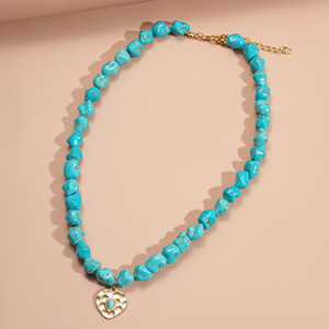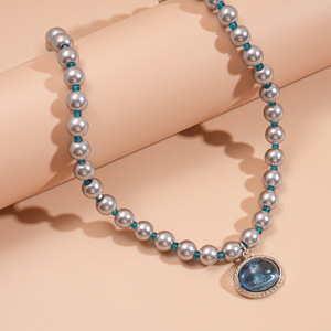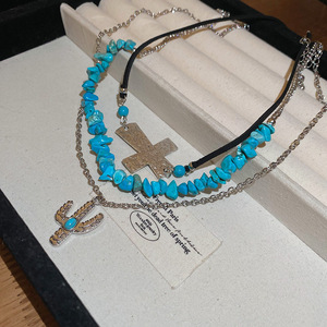 欧美跨境松石蓝串珠项链轻奢高级感锁骨链个性设计感潮流时尚项饰