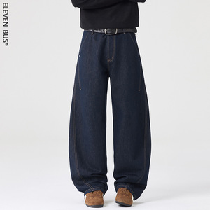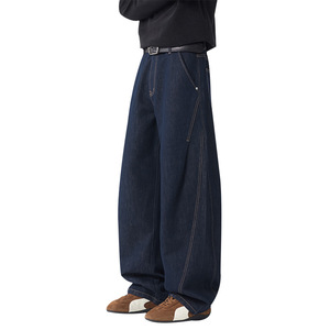 美式复古牛仔裤 美式裤子 广州新塘高端牛仔裤 新塘牛仔裤 设计感牛仔裤男阔腿宽松弯刀裤长裤子