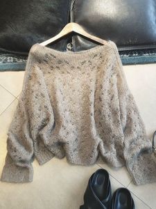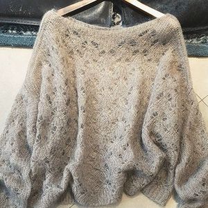 感镂空灰色毛衣女年早秋薄款慵懒风针织衫宽松上衣女百搭