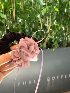 韩版新款紫色烧花发圈蝴蝶结飘带面膜圈高级感气质发绳氛围感头饰