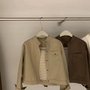 休闲新款工装韩系衬衫外套设计短款立领百搭上衣韩版衬衣