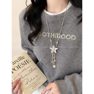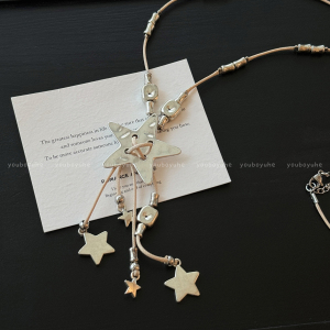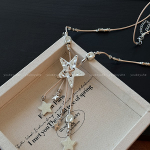 甜酷银色星星流苏长款项链女小众设计个性毛衣链复古做旧挂脖配饰