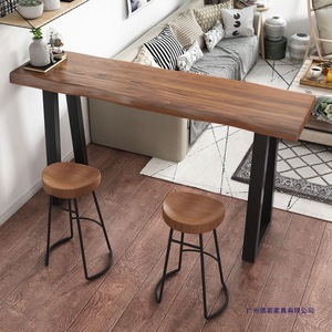 实木吧台桌家用阳台靠墙长条窄桌子商用酒吧台高脚桌桌椅组合吧台