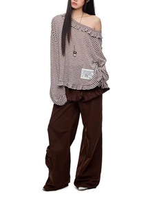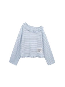 踱步浅町辣妹图案印花斜肩露肩长袖T恤衫防晒罩衫上衣女