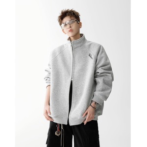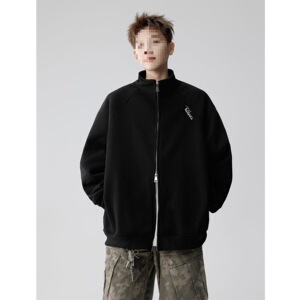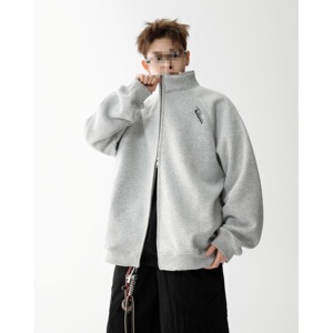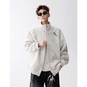 美式重磅刺绣立领卫衣男女春秋季宽松百搭开衫外套双拉链夹克上衣