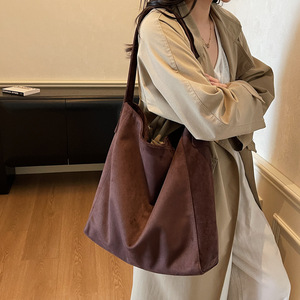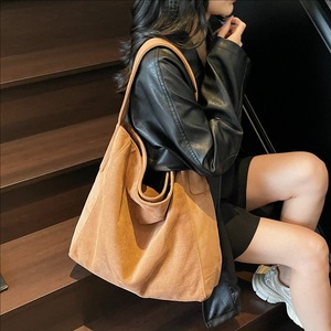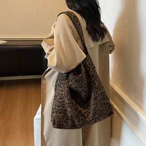 跨境麂皮绒豹纹单肩腋下包女2025秋冬新款大容量通勤托特包水桶包