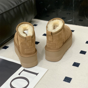 河南桑坡厚底雪地靴女冬季新款皮毛一体加绒加厚保暖羊毛棉鞋东北