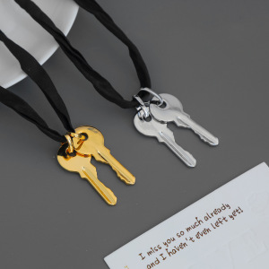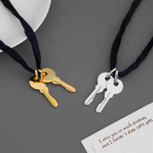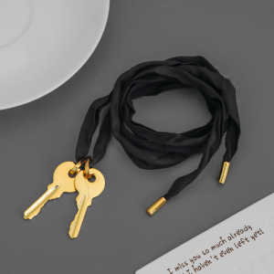 CARV*家小众高级感金属钥匙项链极简风长款布条挂绳钥匙项链