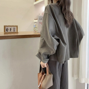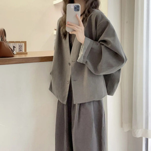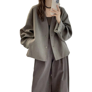 长袖V字领宽松时尚外套女2025秋季英伦风纯色通勤百搭开衫上衣潮