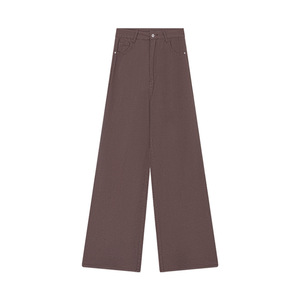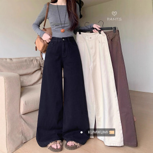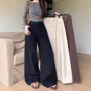 咖色宽松高腰牛仔裤女秋季百搭显瘦阔腿裤黑色垂感直筒裤拖地长裤