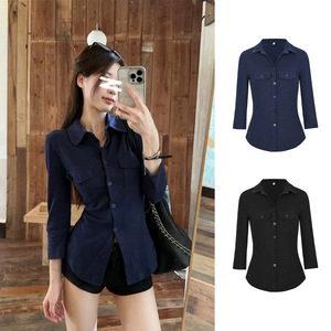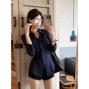 /魔西女王纯欲风翻领长袖衬衫微胖收腰显瘦设计感上衣
