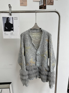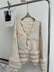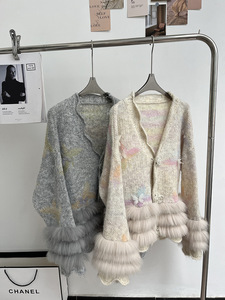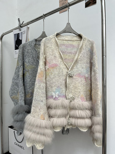 2025新皮草狐狸毛渐变甜美外套设计感立体蝴蝶花朵长袖毛衣女外贸