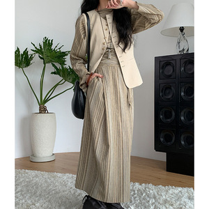 taup清冷艺术感条纹套装裙一字领上衣腰带围裹半裙松弛文艺2025秋
