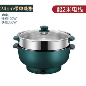 北欧绿【加厚麦饭石】2米电线-22CM【可煎炒煮饭】+蒸笼