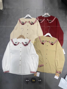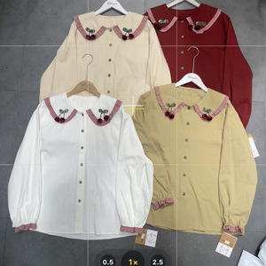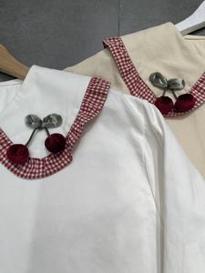 森系文艺小清新娃娃领百搭衬衫秋季新款小个子小众泡泡袖长袖衬衣