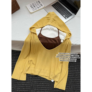 塞纳 2025秋季新款V领慵懒风毛衣针织衫女天丝背心上衣两件套