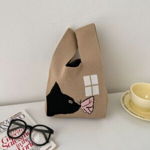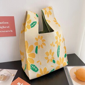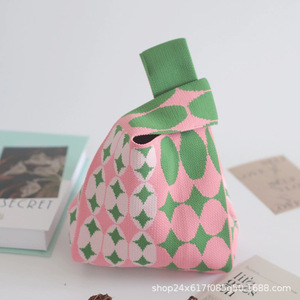 水桶包上班族手提袋可爱水桶型手拎便当包外出手提针织包新款编织