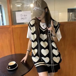 春秋季毛衣ins潮流提花针织衫女款宽松V领背心外搭新款韩版马甲