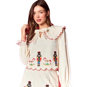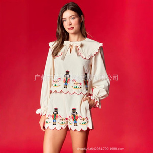 亚马逊25秋冬新款跨境欧美女装圣诞节卫兵亮片花边装饰两件套套装