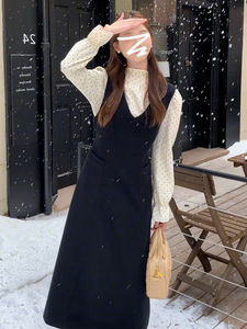 法式感穿搭一整套黑色背带连衣裙子女秋冬季2025新款套装长裙百搭
