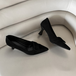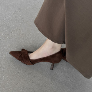5厘米跟高~羊皮气质通勤高跟鞋 尖头浅口日常细跟单鞋女乐福鞋女