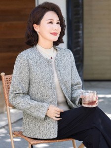 2025秋季新款小香风毛呢外套时尚休闲阔太太洋气减龄中老年妈妈装