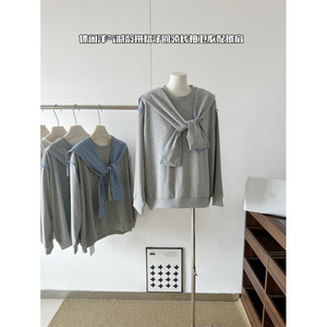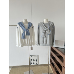 塞纳2025早秋新款休闲洋气减龄拼格子圆领长袖卫衣配披肩