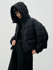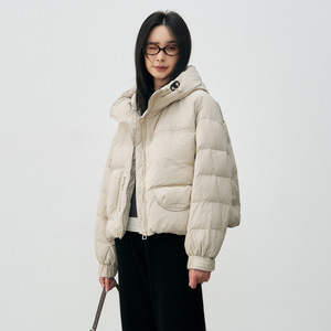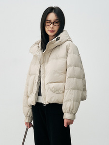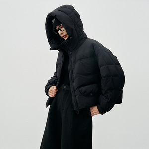 韩版2025年冬季新款短款平湖羽绒服女士连帽宽松面包服大码90鸭绒