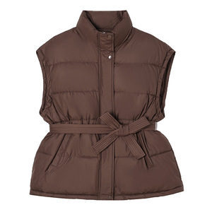 羽绒棉马甲女2025新款秋冬收腰背心立领系带欧美风坎肩马夹外套