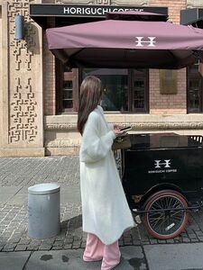 秋冬中长款水貂绒毛衣开衫女宽松慵懒风加厚针织外套气质大衣新款