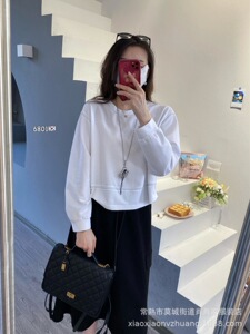 2025秋季明线设计感短款打底上衣女简韩系宽松休闲百搭长袖t恤