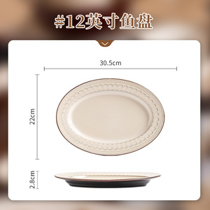 美式复古碗碟套装家用浮雕饭碗平盘菜盘子釉下彩陶瓷西餐盘餐具