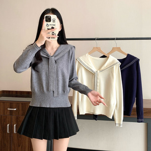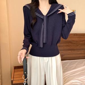 海军领披肩长袖针织衫女秋冬新款高级感内搭毛衣韩版简约显瘦上衣