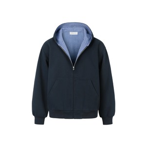 双面穿格纹拼接开衫卫衣男女春秋重磅设计感cleanfit情侣连帽外套