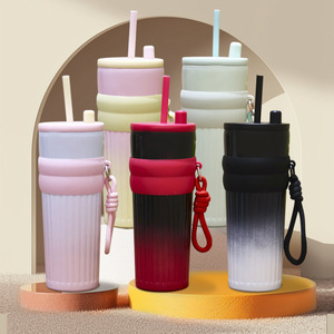 跨境条纹极光杯316不锈钢保温杯双层真空户外运动吸管水杯带皮套