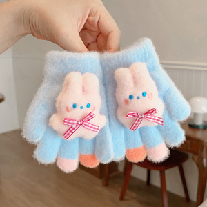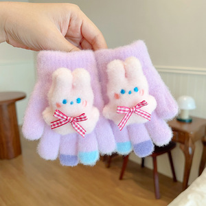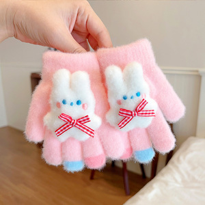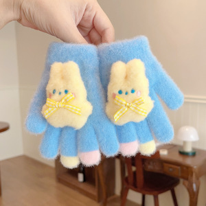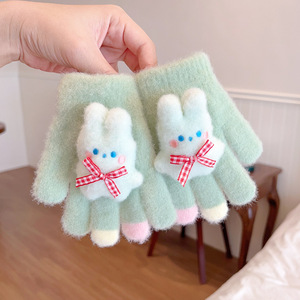 2-5呆萌可爱小女孩保暖手套冬季防寒加厚卡通小兔子公仔骑车五指